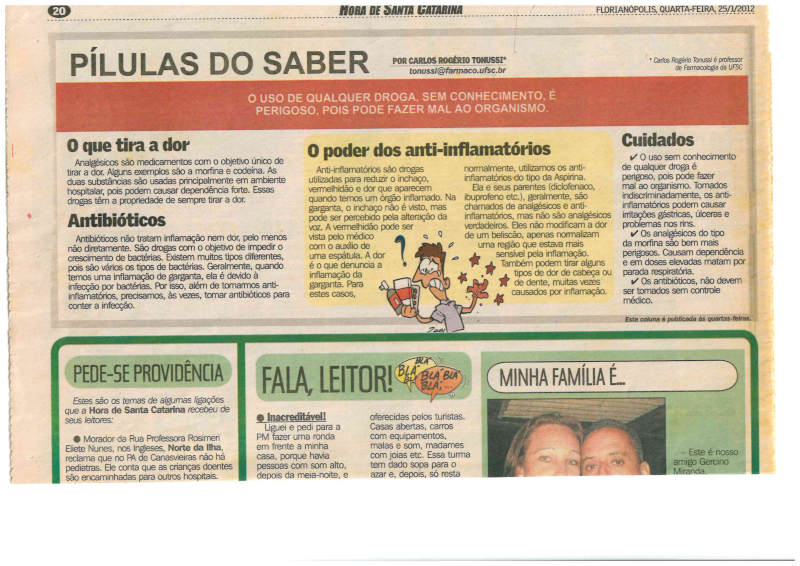 - O uso sem conhecimento de qualquer droga é perigoso, pois qualquer medicamento pode fazer mal ao organismo. Os anti-inflamatórios se tomados indiscriminadamente podem causar irritações gástricas, úlceras e problemas nos rins.
