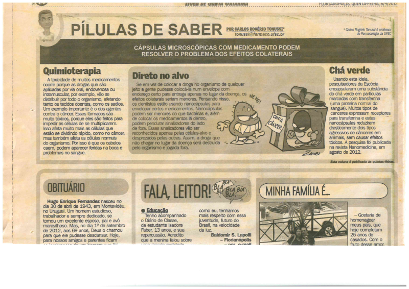 Mas se ao invés de colocar a droga no organismo de qualquer jeito, a gente pudesse colocá-la dentro de um envelope com o endereço certo para entrega no lugar da doença apenas, os efeitos colaterais iriam ser muito menores. É pensando nisso que os cientistas estão usando nanocápsulas para envelopar certos medicamentos. Nanocápsulas podem ser menores do que bactérias e, além de colocar os medicamentos lá dentro, podemos pendurar sinalizadores do lado de fora. Esses sinalizadores vão ser reconhecidos apenas pelas células alvo e desprezado pelas outras. Assim, a droga que não chegar no lugar da doença, vai ser destruída pelo organismo e jogada fora.